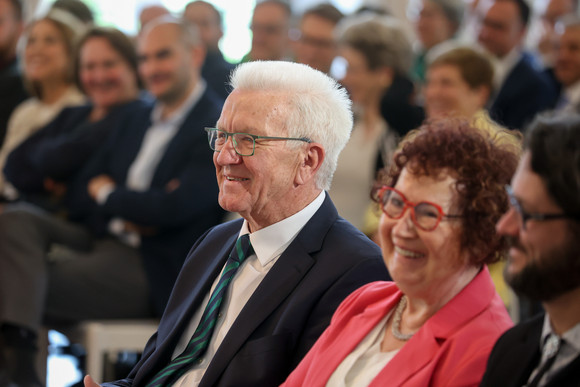 Aus Anlass des 75. Geburtstags von Ministerpräsident Winfried Kretschmann hat im Neuen Schloss in Stuttgart ein Festakt stattgefunden. Neben Mitgliedern der Landesregierung haben Landtagsabgeordnete, Vertreterinnen und Vertreter aus Justiz, Verwaltung, Wirtschaft, Wissenschaft, Kunst und Kultur sowie der Kommunen, Parteien, Kirchen, Verbände, des Sports, der Medien und Zivilgesellschaft teilgenommen.