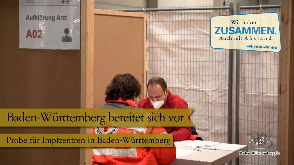 Dies ist eine bisher kaum dagewesene logistische Herausforderung für alle Beteiligten. In Ulm hat gestern das Rote Kreuz auf der Messe den Betrieb eines solchen Impfzentrums geprobt. Für die Probe war der Aufbau noch provisorisch - aber es ging vor allem darum, die Abläufe zu Proben und Schwachstellen im Konzept zu erkennen. Das alles wäre nicht möglich ohne die Unterstützung der unzähligen ehrenamtlichen bei den Hilfs- und Rettungsdiensten.