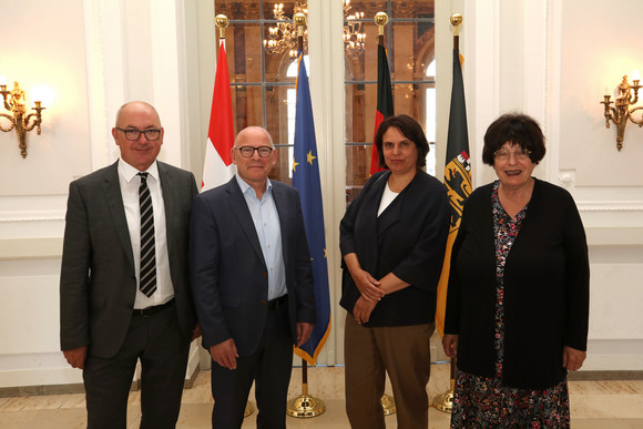 Staatsrätin Gisela Erler und Verkehrsminister Winfried Hermann haben eine Delegation der Regierungsvertretungen Basel-Stadt und Basel-Landschaft im Neuen Schloss in Stuttgart empfangen.