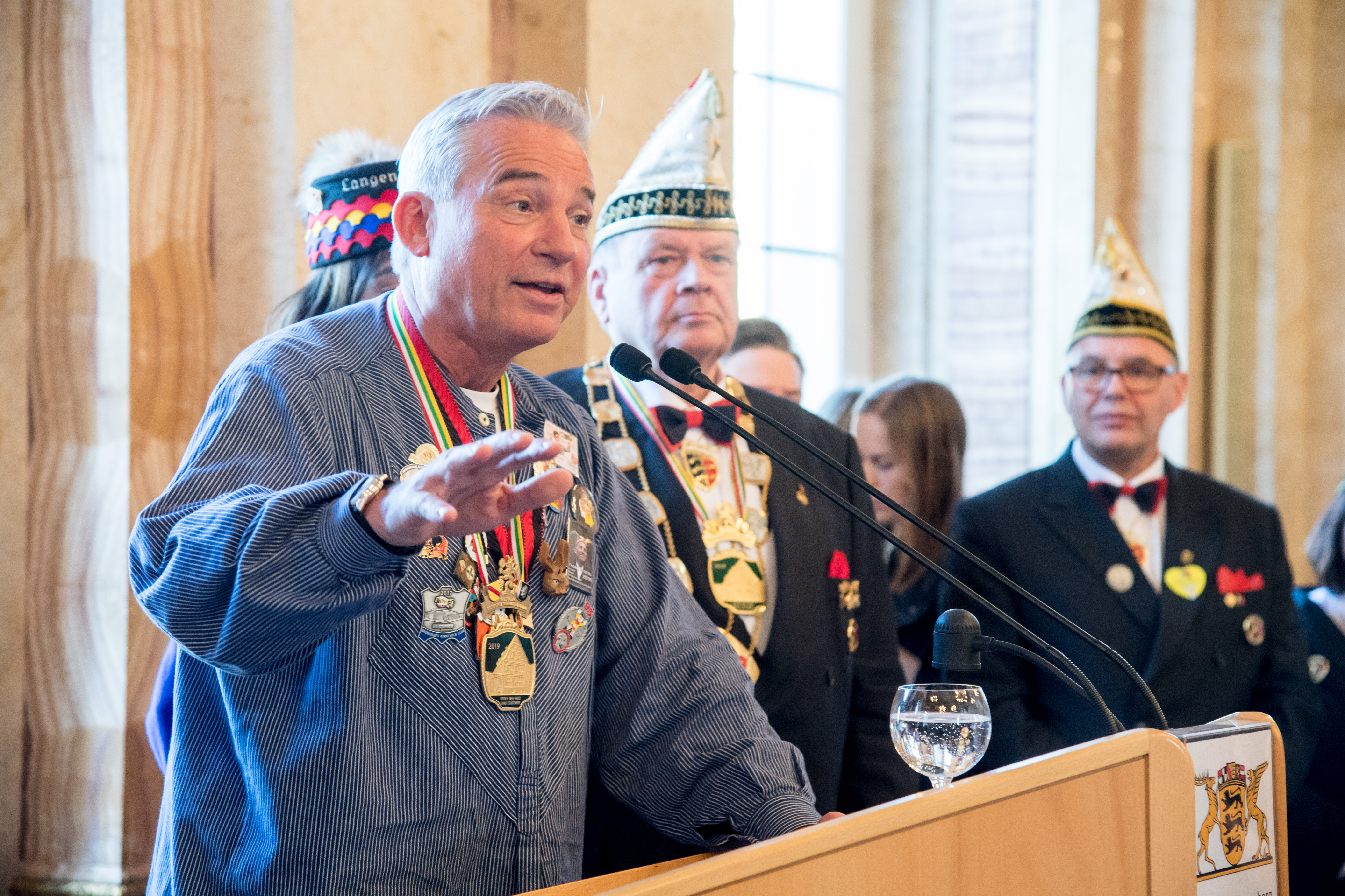 Innenminister Thomas Strobl hat in Vertretung von Ministerpräsident Winfried Kretschmann rund 600 Karnevalisten des Landesverbands Württembergische Karnevalsvereine e.V., der Vereinigung Badisch-Pfälzischer Karnevalsvereine e.V. sowie des Narrenrings Main-Neckar e.V. im Neuen Schloss in Stuttgart empfangen.