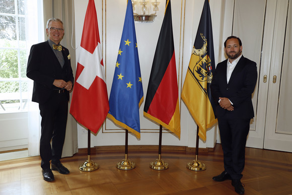 Staatssekretär Florian Hassler hat den Schweizer Botschafter Dr. Paul Seger zu einem Gespräch in der Villa Reitzenstein in Stuttgart empfangen.