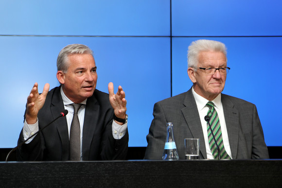 Ministerpräsident Winfried Kretschmann und Digitalisierungsminister Thomas Strobl haben in der Regierungspressekonferenz in Stuttgart die Maßnahmen zur Umsetzung der Digitalisierungsstrategie digital@bw vorgestellt und Fragen der Journalisten beantwortet.