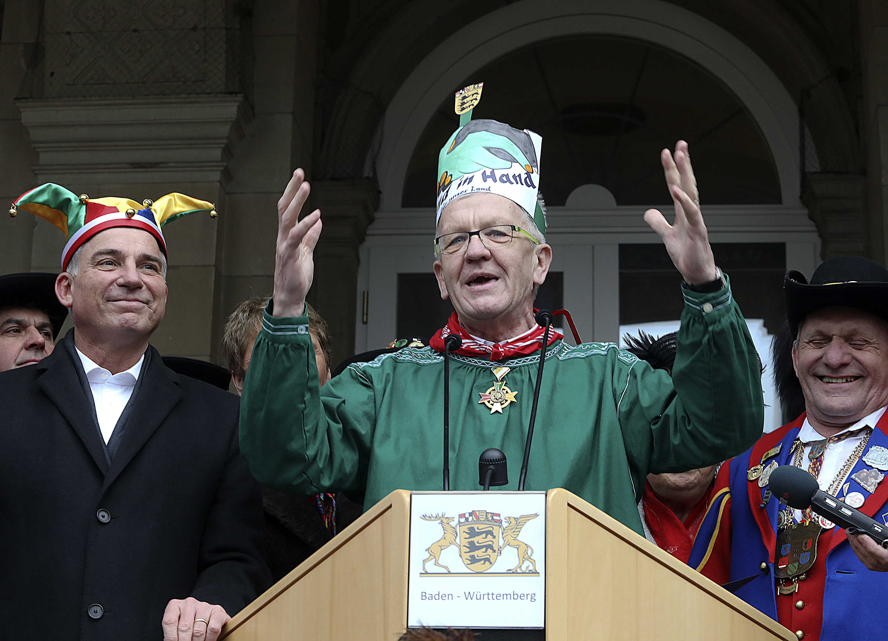 Zum traditionellen „Närrischen Staatsempfang der Landesregierung“ hat Ministerpräsident Winfried Kretschmann auch in diesem Jahr wieder Vertreterinnen und Vertreter der schwäbischen und alemannischen Narrenzünfte in das Neue Schloss in Stuttgart eingeladen.
