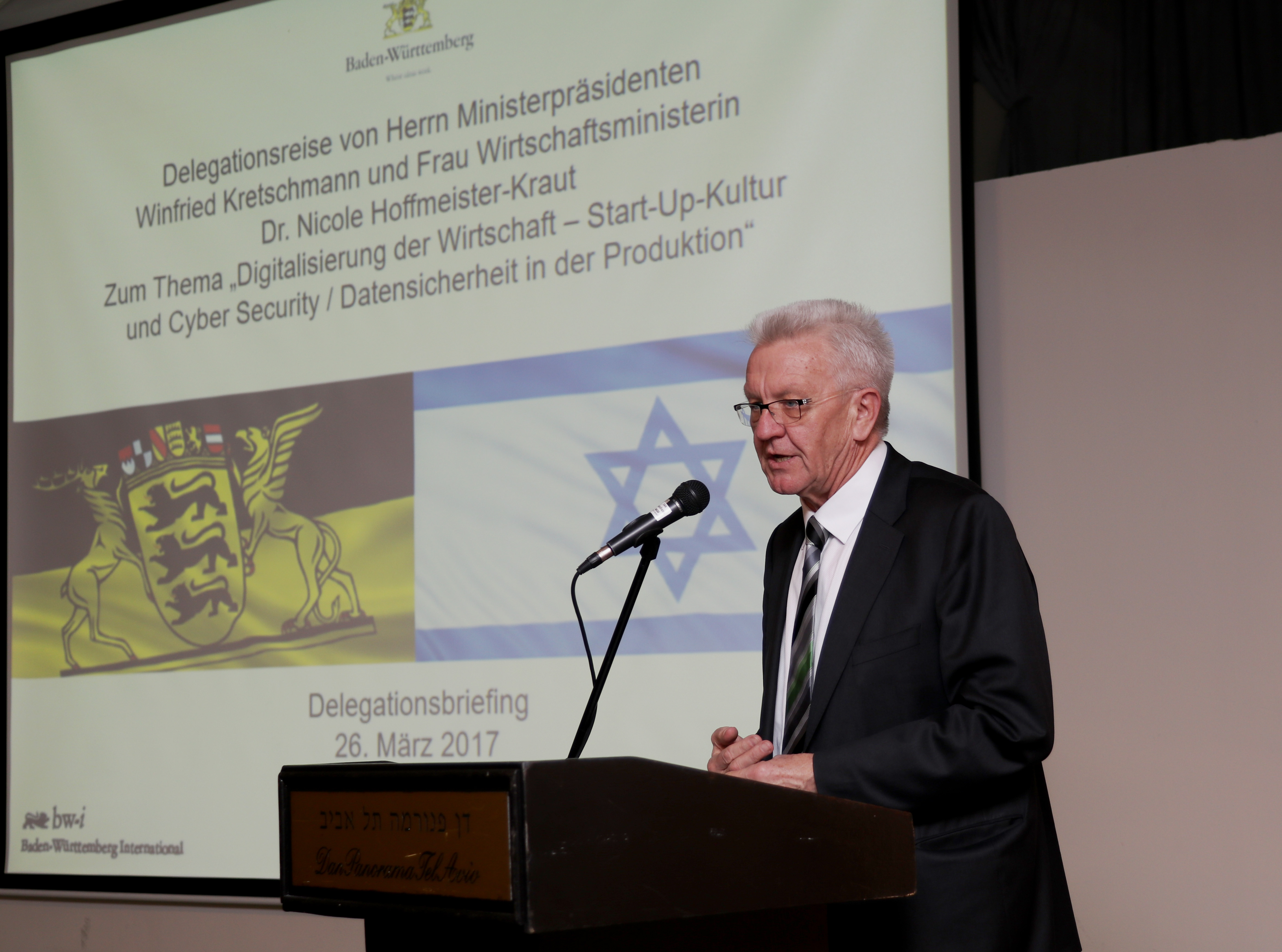 Ministerpräsident Winfried Kretschmann und Wirtschaftsministerin Nicole Hoffmeister-Kraut besuchen mit einer rund 70-köpfigen Wirtschafts- und Wissenschaftsdelegation Israel und die Palästinensischen Gebiete. Thematische Schwerpunkte sind die Digitalisierung der Wirtschaft und die Start-up-Kultur.