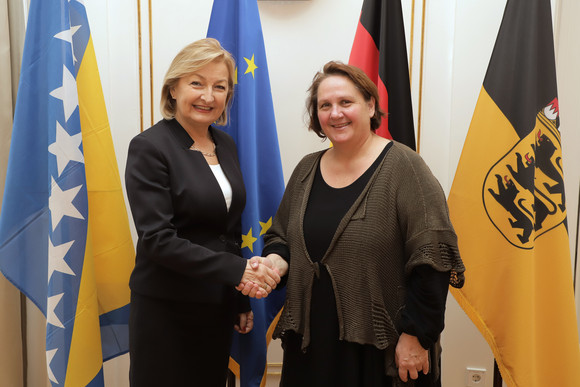 Antrittsbesuch Schopper empfängt Botschafterin von Bosnien und Herzegowina 12.02.2020 Teilen Copyright Staatsministerium Baden-Württemberg Staatsministerin Theresa Schopper (r.) und die Botschafterin von Bosnien und Herzegowina, Jadranka Winbow (l.) Herunterladen Staatsministerin Theresa Schopper hat die Botschafterin von Bosnien und Herzegowina, Jadranka Winbow, zu einem Antrittsbesuch in der Villa Reitzenstein in Stuttgart empfangen. Zurück zur Übersicht