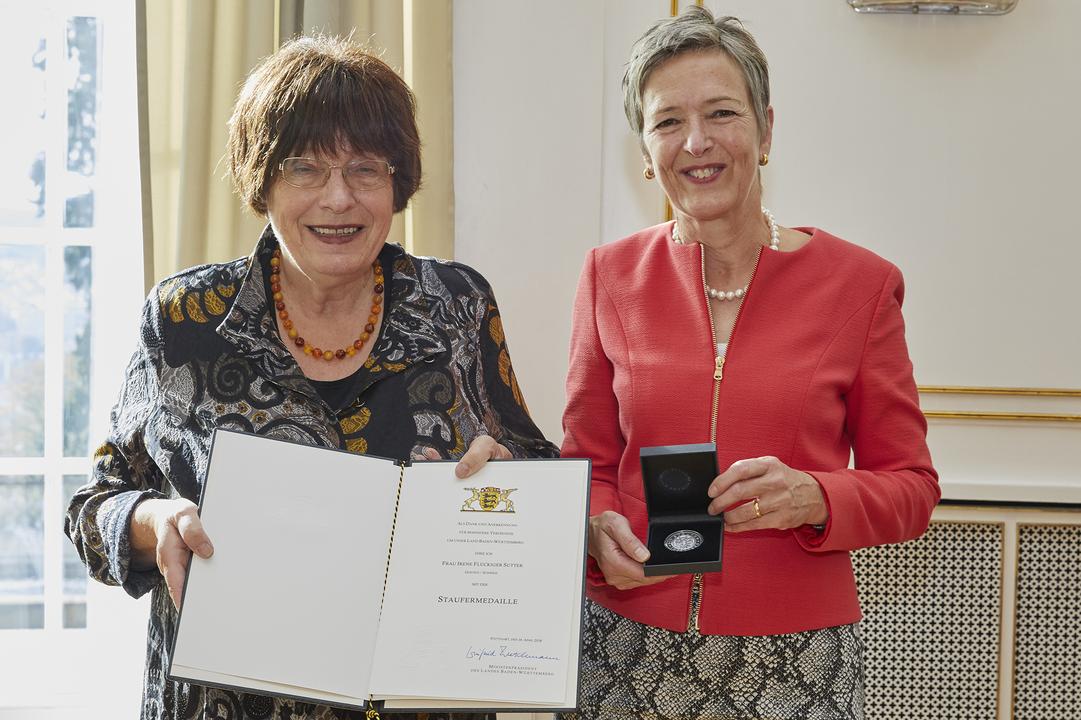 Staatsrätin Gisela Erler hat der ehemaligen Schweizer Generalkonsulin Irene Flückiger Sutter die Staufermedaille überreicht und ihre besonderen Verdienste um die Freundschaft zwischen Baden-Württemberg und der Schweiz gewürdigt.