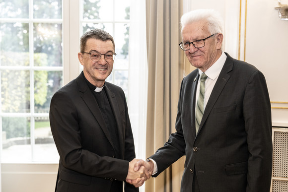 Der designierte Bischof von Rottenburg-Stuttgart, Prälat Dr. Klaus Krämer, hat vor Ministerpräsident Winfried Kretschmann Treue zum Verfassungsstaat in Bund und Land versprochen.