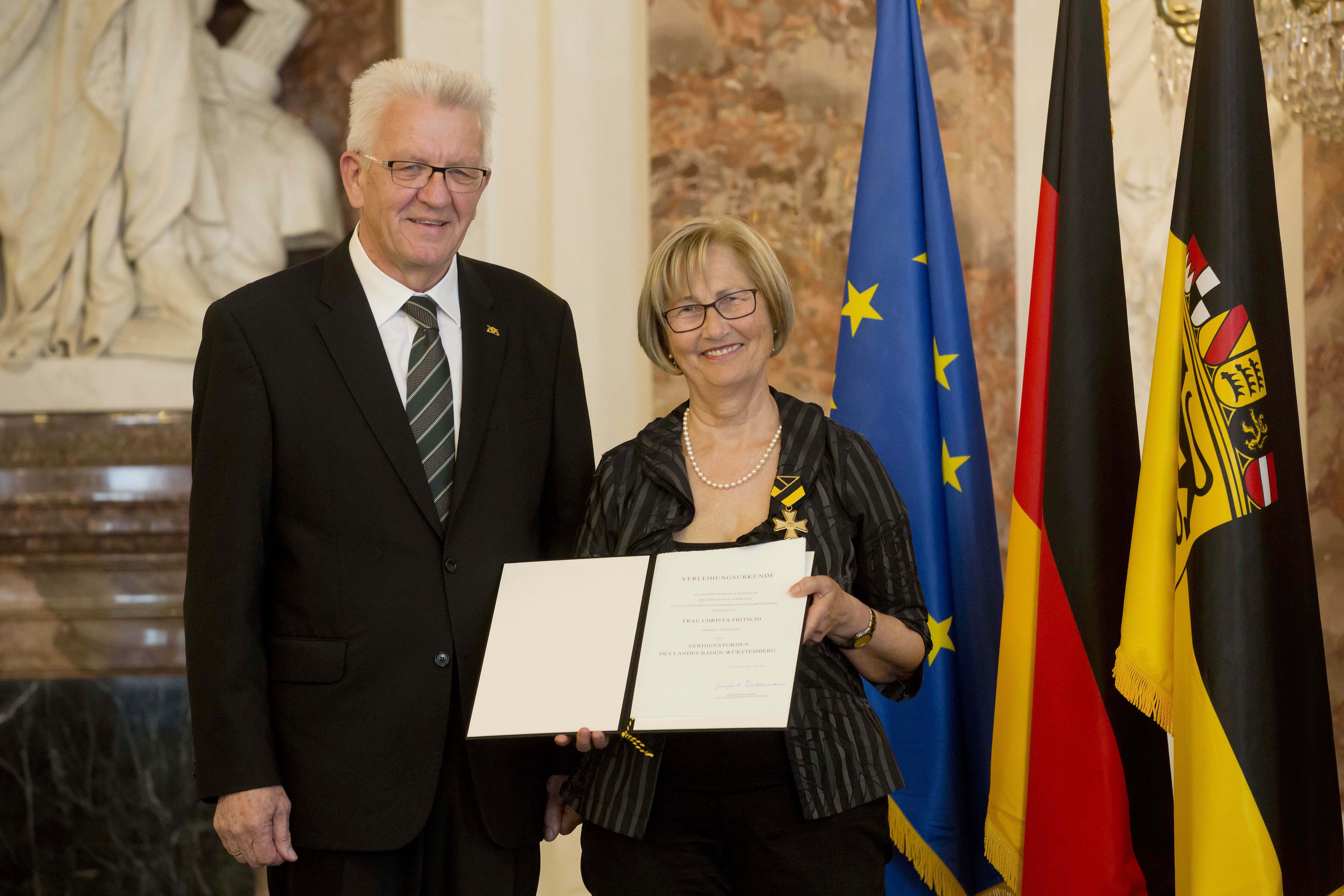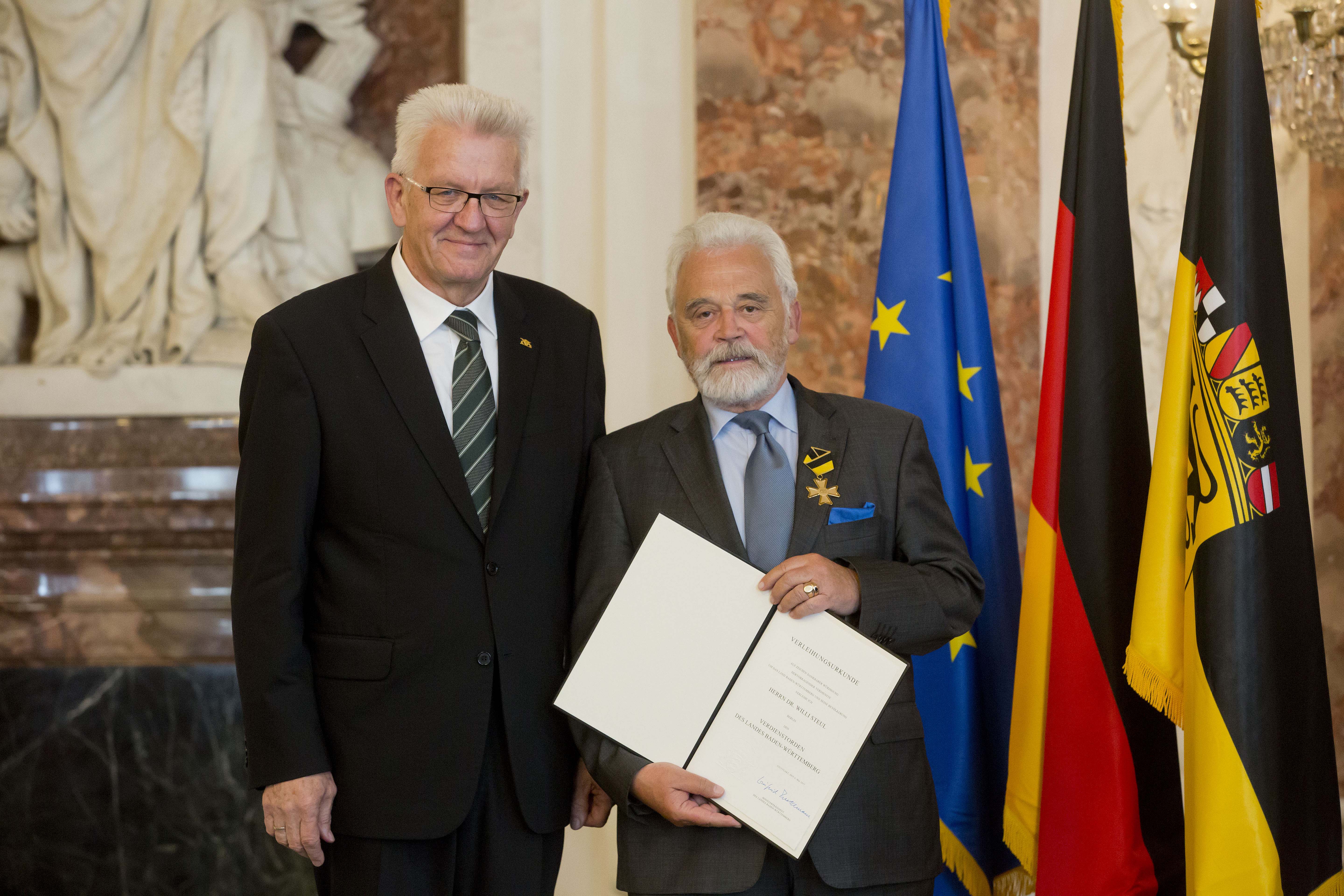 Ministerpräsident Winfried Kretschmann hat 22 verdienten Persönlichkeiten im Mannheimer Schloss den Verdienstorden des Landes Baden-Württemberg verliehen. Die Geehrten stünden für Mitmenschlichkeit, Solidarität und den Willen, neue Wege zu gehen. Damit seien sie auch echte Vorbilder.