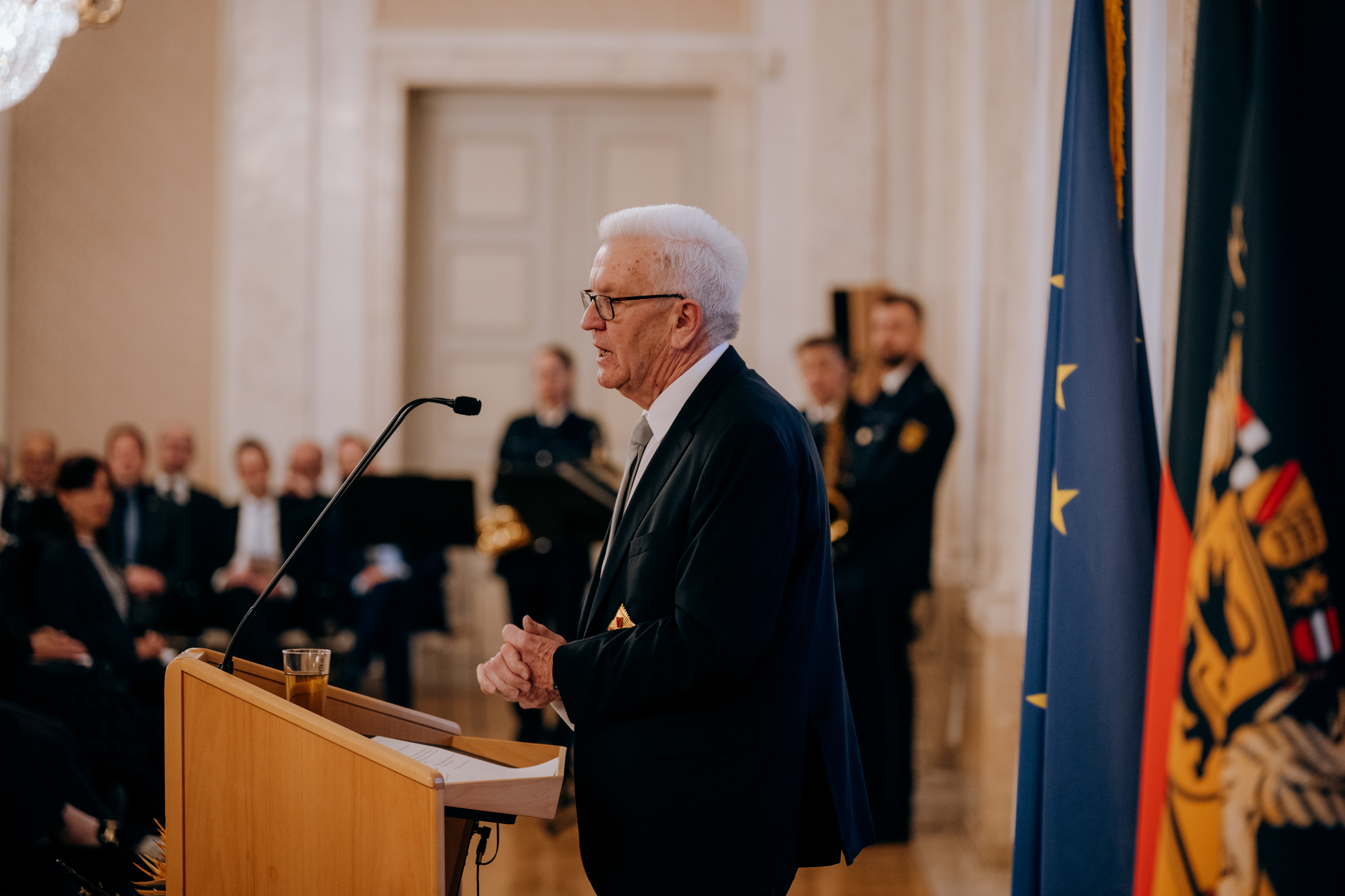 Für herausragende Verdienste um das Land und seine Bevölkerung hat Ministerpräsident Winfried Kretschmann den Verdienstorden des Landes Baden-Württemberg an 27 verdiente Persönlichkeiten überreicht.