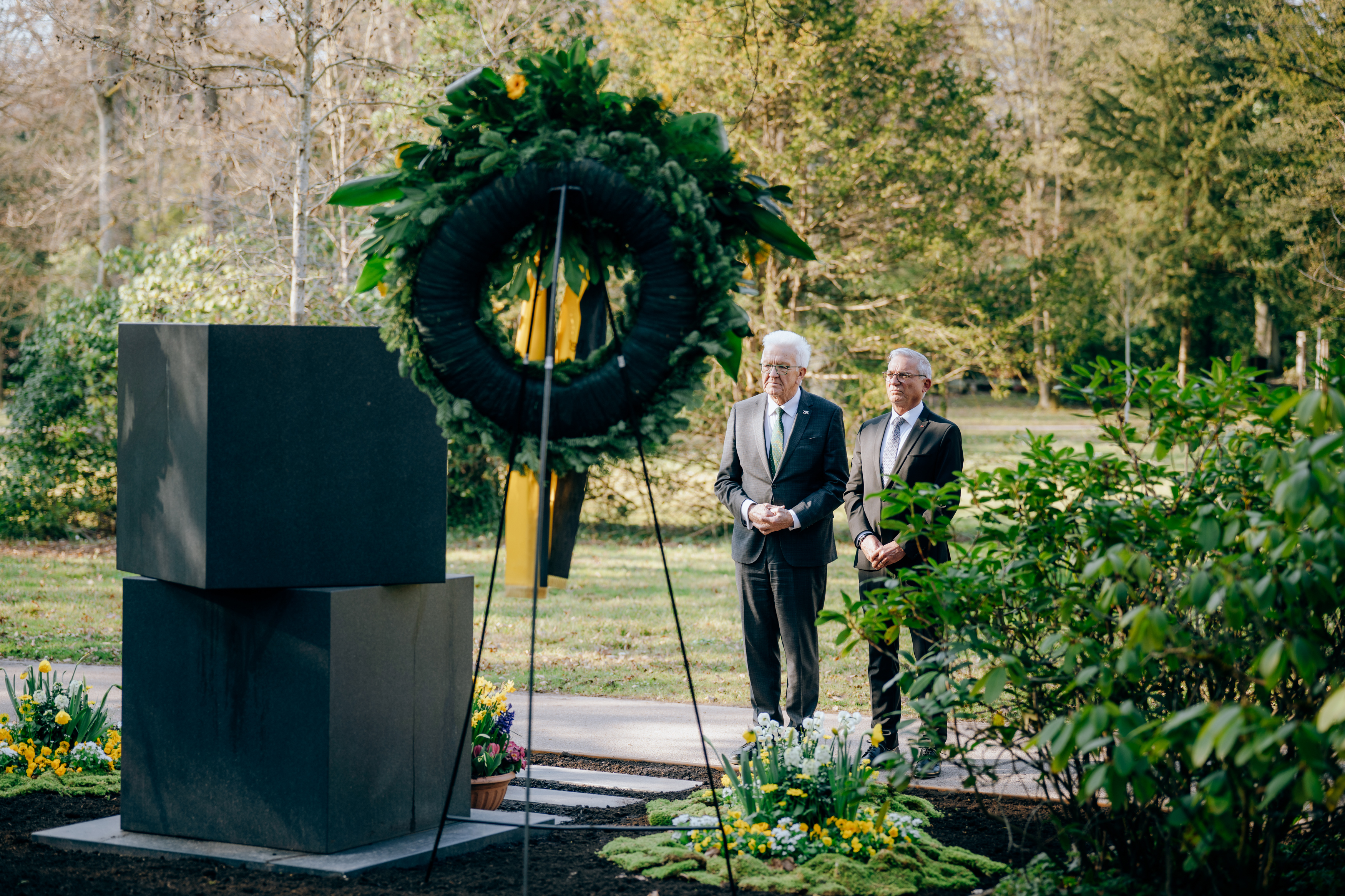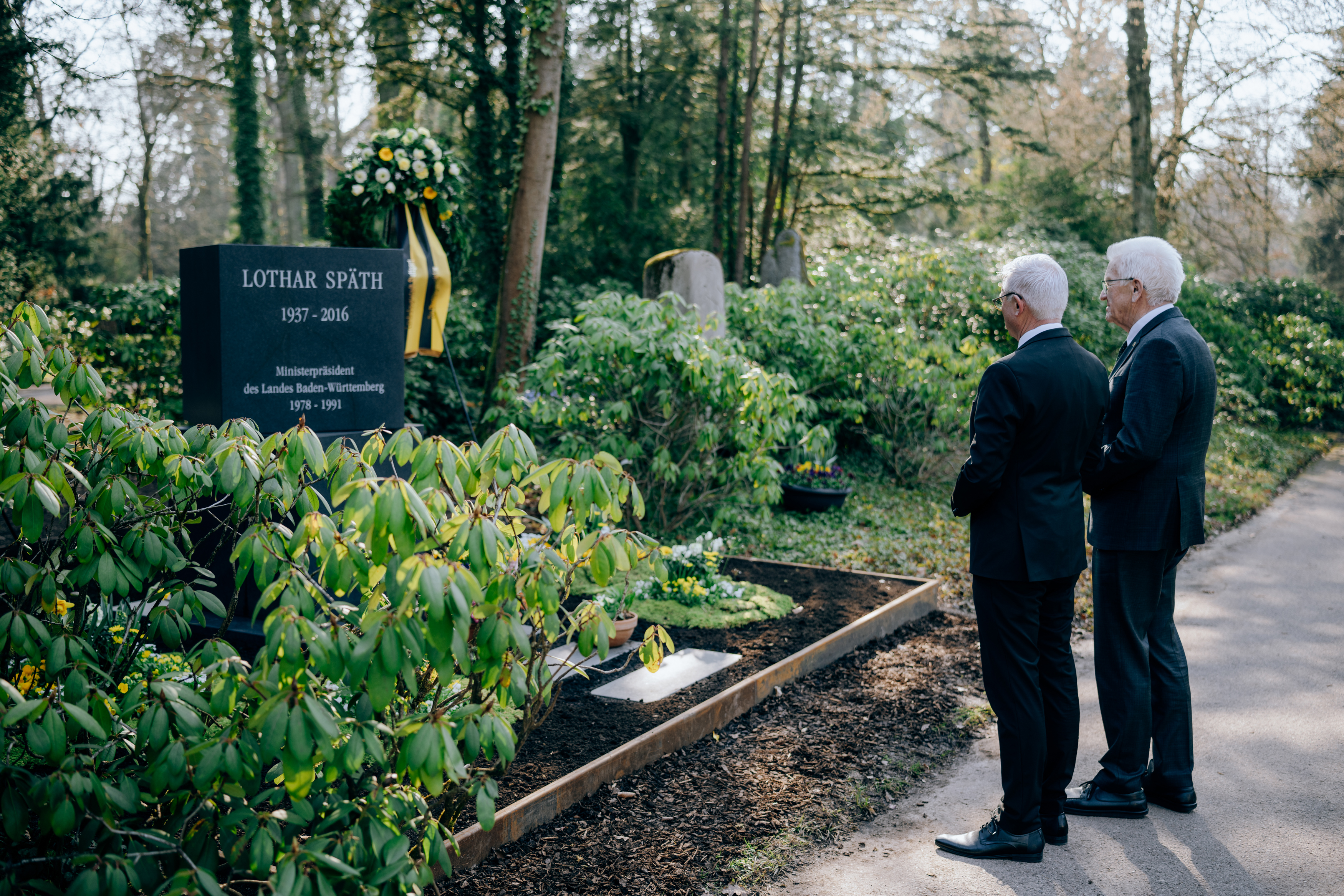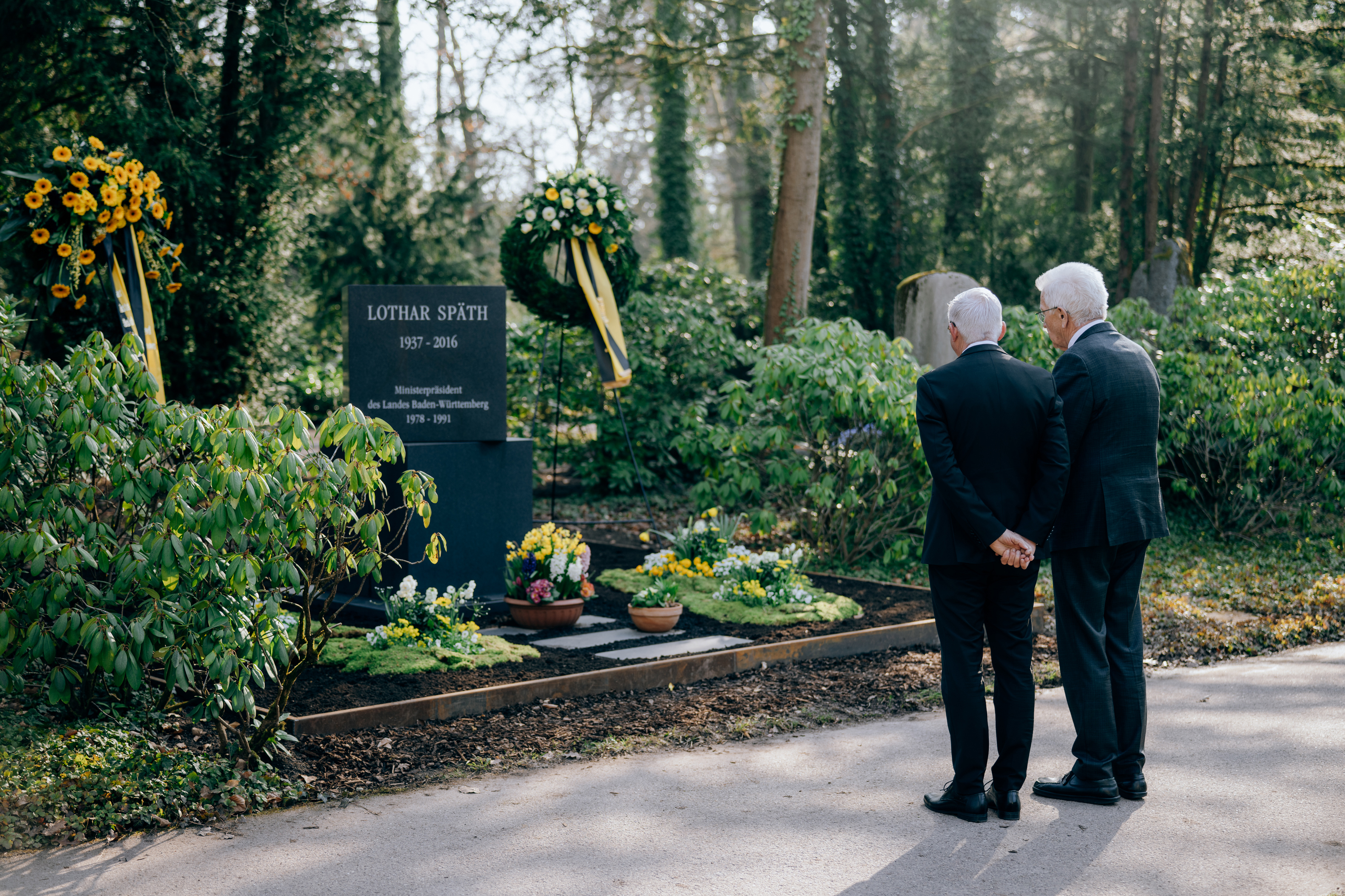 Anlässlich des zehnten Todestages des früheren Ministerpräsidenten Lothar Späth hat Ministerpräsident Winfried Kretschmann gemeinsam mit Innenminister Thomas Strobl dessen Grab besucht und einen Kranz niederlegen lassen.