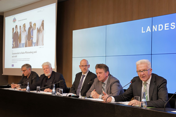Ministerpräsident Winfried Kretschmann und Sozial- und Integrationsminister Manne Lucha haben in der Regierungspressekonferenz in Stuttgart eine Studie der Bertelsmann-Stiftung zum gesellschaftlichen Zusammenhalt in Baden-Württemberg vorgestellt und Fragen der Journalisten beantwortet.