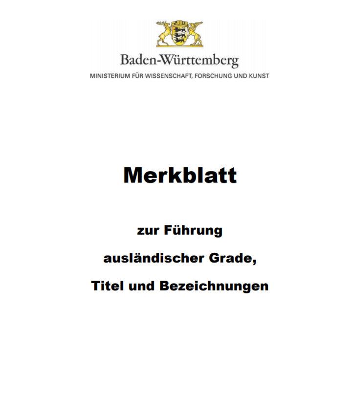 Merkblatt zur Führung ausländischer Grade, Titel und Bezeichnungen